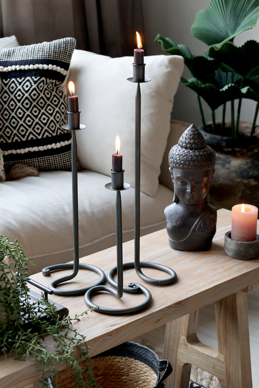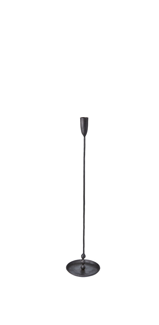 Handgerður kertastjaki úr járni, gæti verið mismunandi í útliti. Það koma 3 stærðir i þessum stjökum og þetta er miðstærðin H: 24,5 Ø: 10