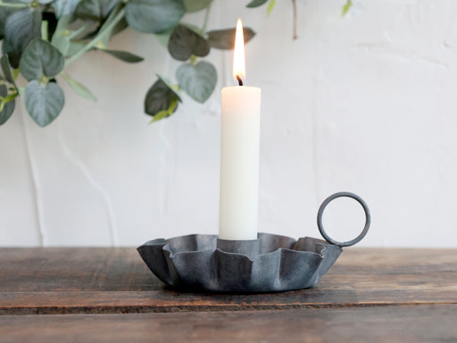 Handgerður kertastjaki úr járni, gæti verið mismunandi í útliti. Þessi stjaki kemur í 3 stærðum og þetta er minnsta stærðin H: 16,5 Ø: 10