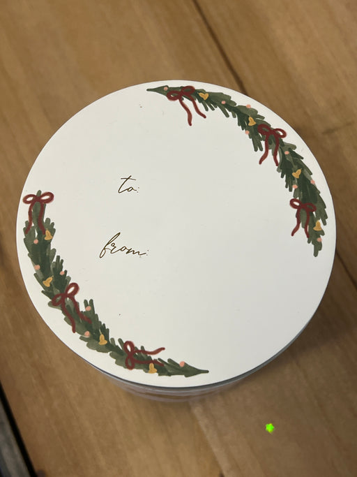 8.6oz Cylinder w Wood Lid & Wreath Accent