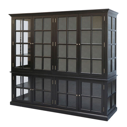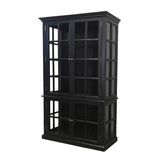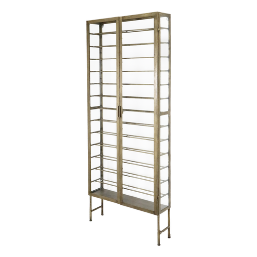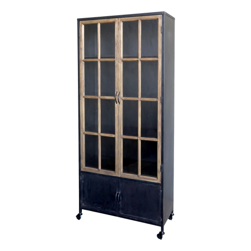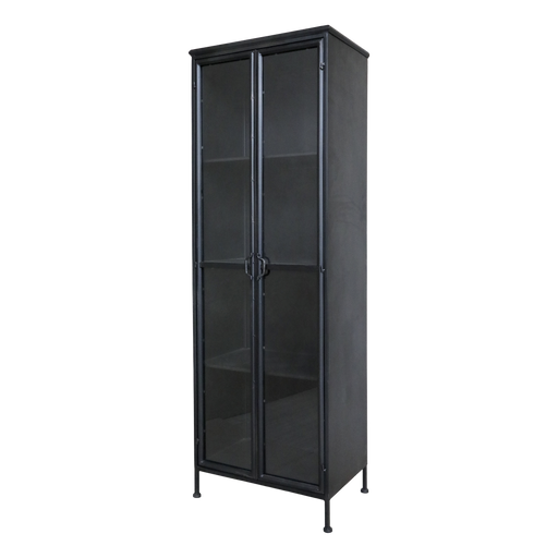 Glæsilegur og vandaður skápur/hilla með glerhurðum og hillum. H184/L63,5/B41,5 cm antique svart. Efni: Járn og gler