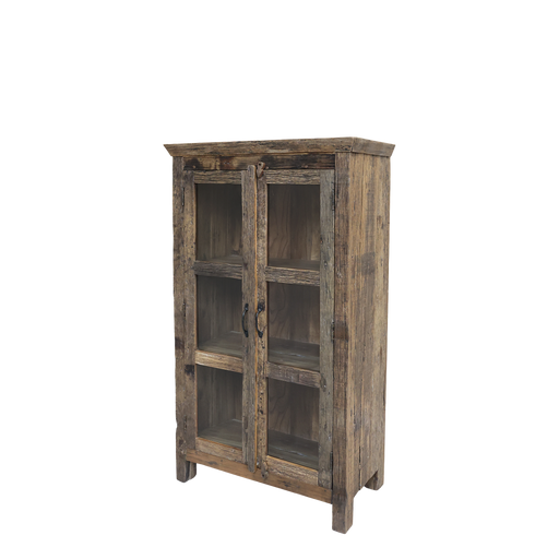 Ofsalega fallegur viðarskápur með glerhurðum og 2 skúffum. Gerður úr endurnýttum viði. H182/L80/B40 cm antique svart.