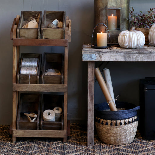 Handmade sorting shelf in solid fir wood. With its 10 compartments it offers many ways of usage, and the small signs in iron frames, makes it easy ...