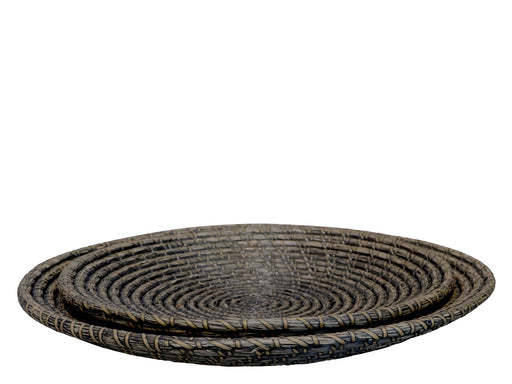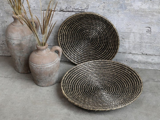 Fallegur ofinn bakki úr sjávargrasi H15/D40 cm antique black