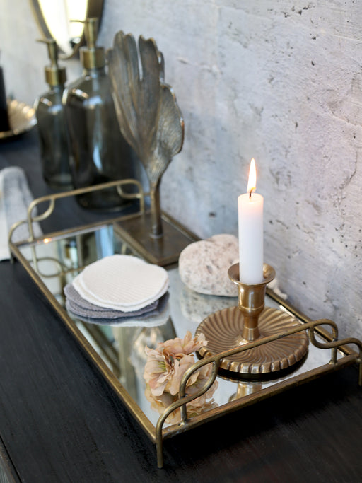 Fallegur bakki með spegli sem sómir sér fallega á borði hvort sem að það er á baðherbergi, fataherbergi eða sem aðventubakki H8/L47.5/W25 cm antiqu...