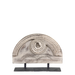 Fantastisk dekoration på fod fra Chic Antique håndlavet af massivt mangotræ og en mørk jernbase. Værket har et mønster, der er smukt udskåret i træet med smukke, orientalske træk.