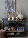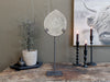 Fantastisk dekoration på fod fra Chic Antique håndlavet af massivt mangotræ og en mørk jernbase. Værket har et mønster, der er smukt udskåret i træet med smukke, orientalske træk.