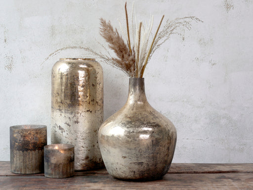 Stór og veglegur glervasi í fallegum gylltum lit H33 D25 cm fattigmandssølv