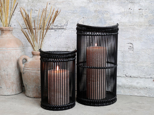 Lukt úr bambus Litur: Svartur H34/Þ30cm Eigum einnig til mikið af fallegum kertum í mörgum fallegum litum til að nota í luktirnar