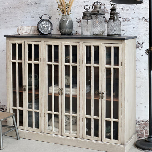• Skenkur með 6 glerhurðum og svörtum toppi