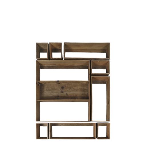 Skemmtilegar og hlýlegar hillur sem koma 9 saman í setti, hægt að raða saman á mismunandi vegu L87/B11,5/H120 cm natur