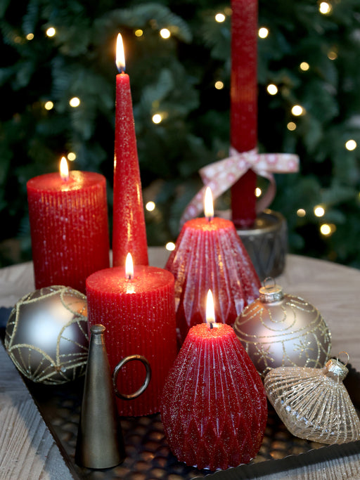 Æðislegu kertin sem brenna svo jafnt niður núna í jólarauðum - með glimmer! H10/D7