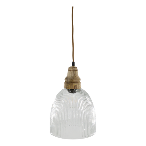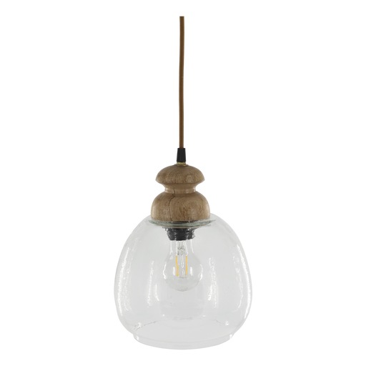 Dásamlega fallegt og sérstakt loftljós með tréperlum og gyllingu. H65/Ø50 cm natur. Þessa vöru þarf að sækja.