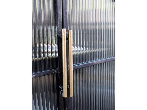 Glæsilegur og vandaður skápur/hilla með glerhurðum og hillum. H184/L63,5/B41,5 cm antique svart. Efni: Járn og gler