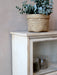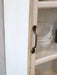 Yndislega fallegur viðarskápur með rennihurð öðru megin og gleri.