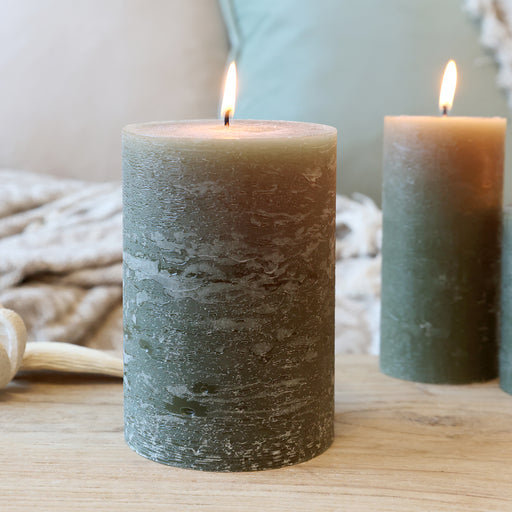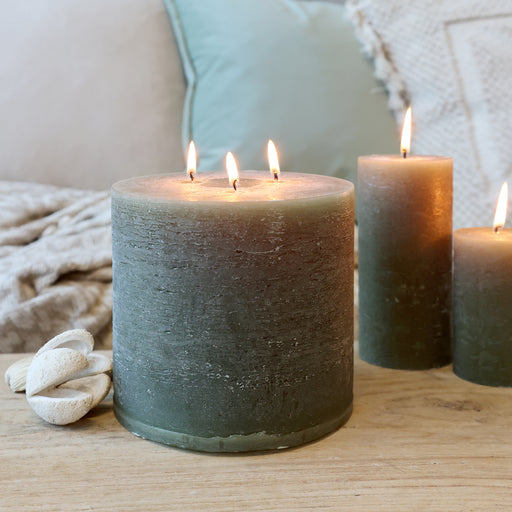 Dásamleg rústik kubbakerti 80 tímar 3 kveikar Litur: Olive H15/D15 Fást í mörgum litum og stærðum