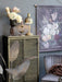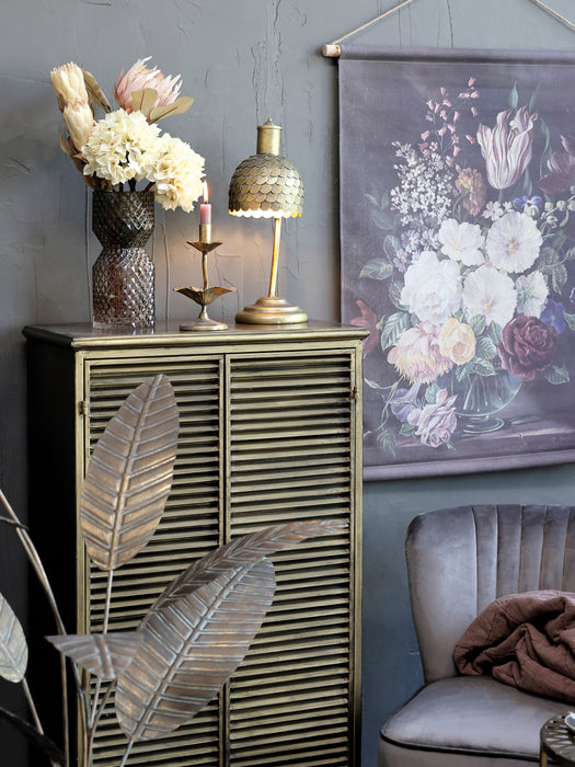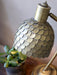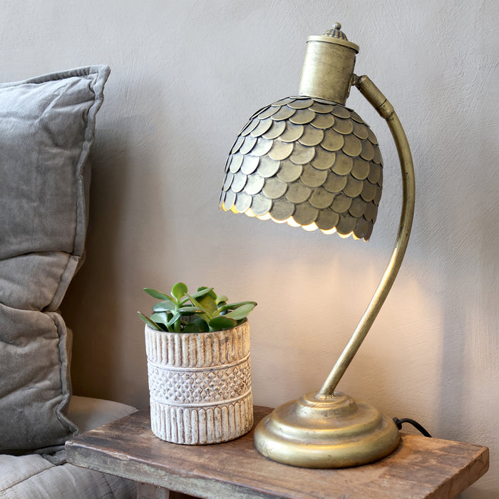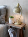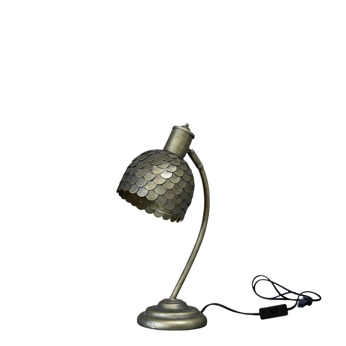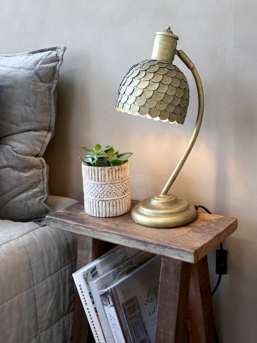 Fallegur borðlampi í fallegum viðarlit með hörskerm